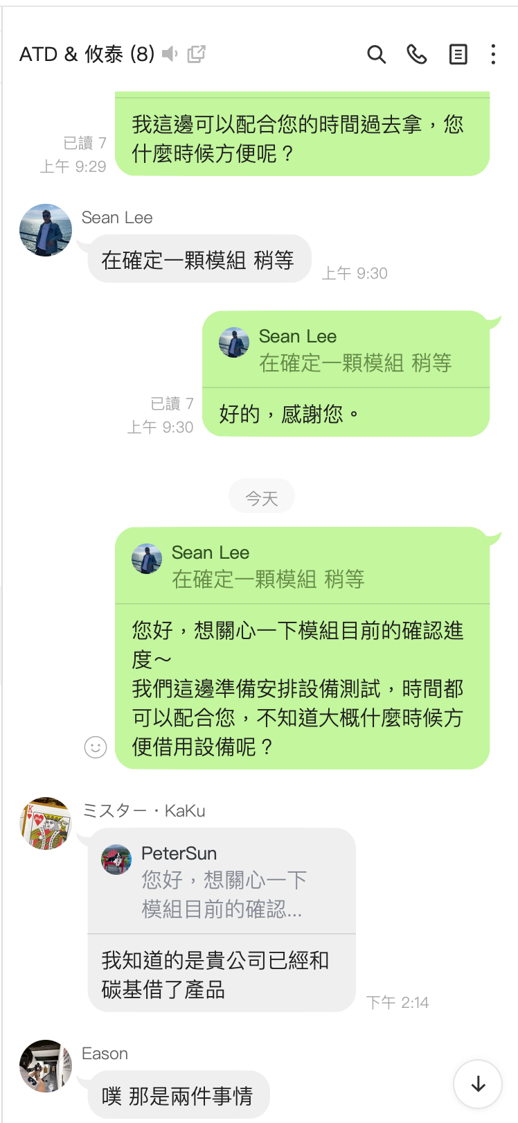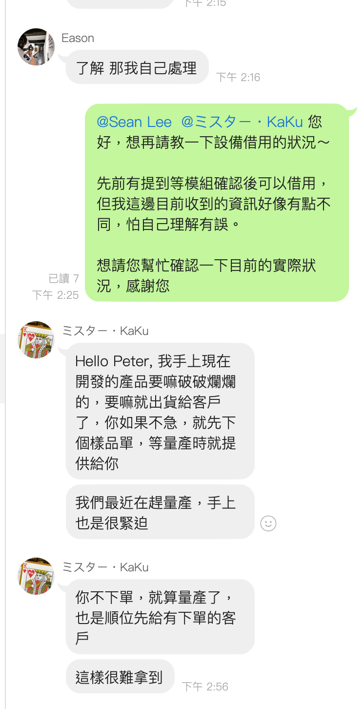 4/9 已經有詢問過,說正在等一模組確認,所以下週三(4/15) 再確認
